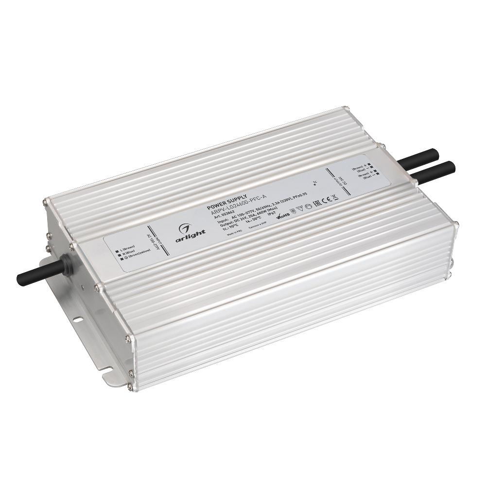 Блок питания ARPV-LG24600-PFC-A (24V, 25A, 600W) (Arlight, IP67 Металл, 5 лет)