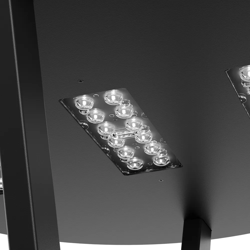 Fresco гармонично впишется в парковую среду, освещая аллеи, скверы, набережные и пешеходные дорожки. «Голова» светильника имеет форму диска, который крепится к основанию при помощи тонких ножек из профильной трубы. Создается эффект парящего светильника над опорой. В светильник устанавливаются линзы с широкой КСС (Ш135х70°, Ш150°). Это позволяет равномерно освещать территорию, без существенных затемнений между опорами. Опоры и закладные в комплект не входят и приобретаются отдельно.