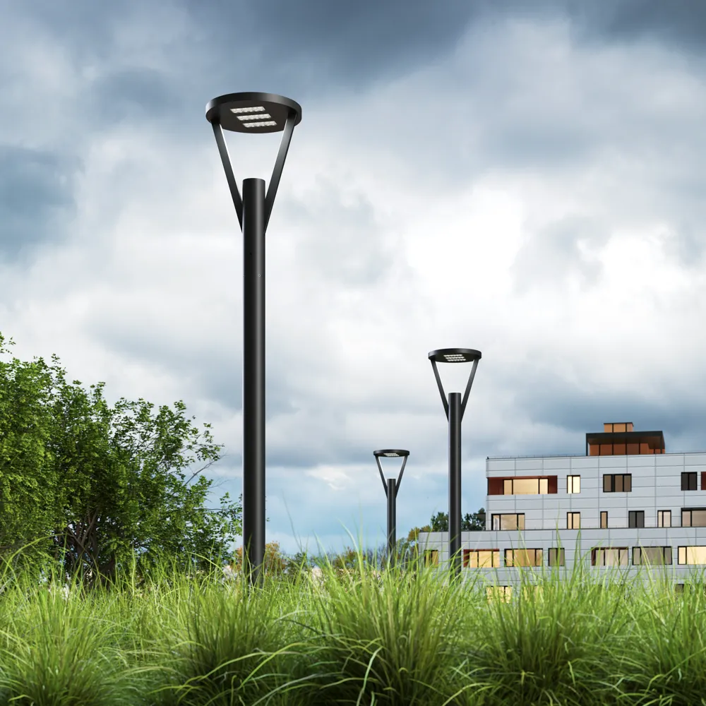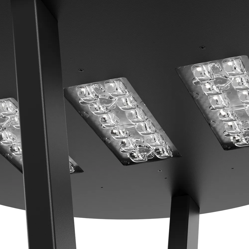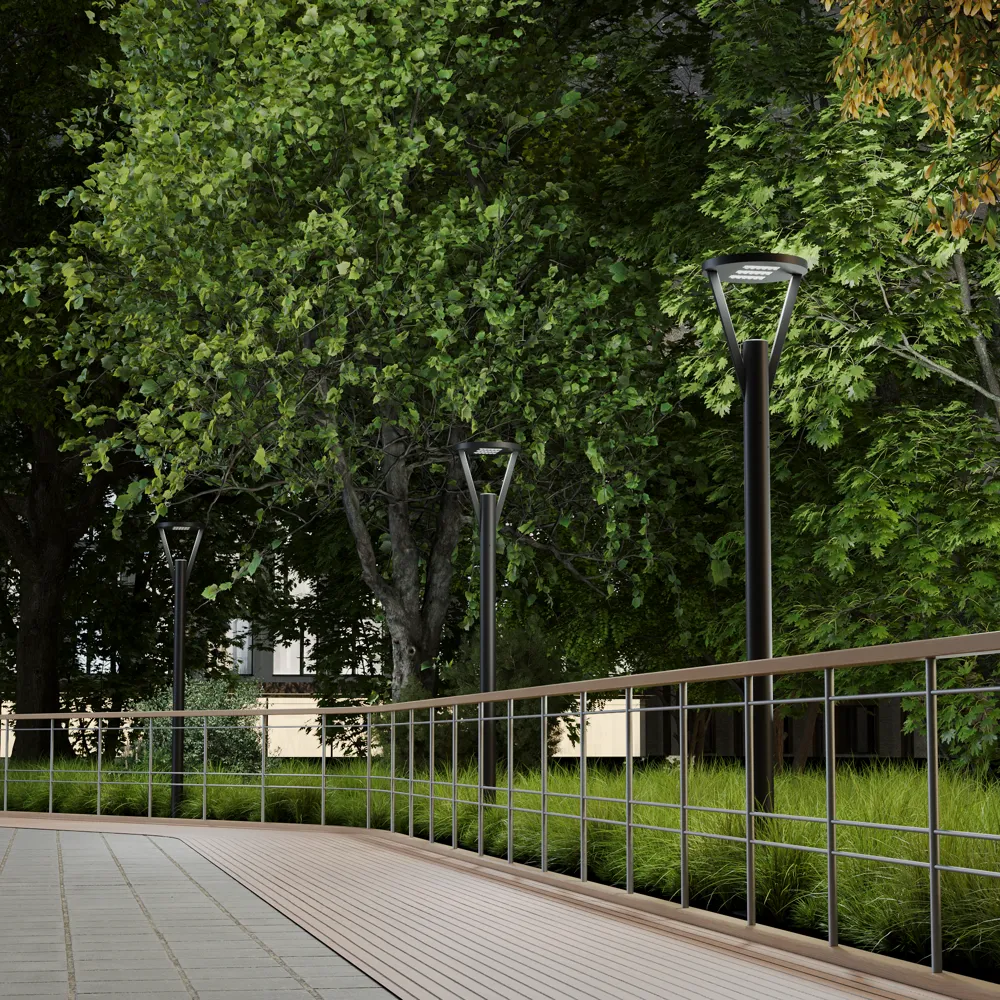 Fresco гармонично впишется в парковую среду, освещая аллеи, скверы, набережные и пешеходные дорожки. «Голова» светильника имеет форму диска, который крепится к основанию при помощи тонких ножек из профильной трубы. Создается эффект парящего светильника над опорой. В светильник устанавливаются линзы с широкой КСС (Ш135х70°, Ш150°). Это позволяет равномерно освещать территорию, без существенных затемнений между опорами. Опоры и закладные в комплект не входят и приобретаются отдельно.