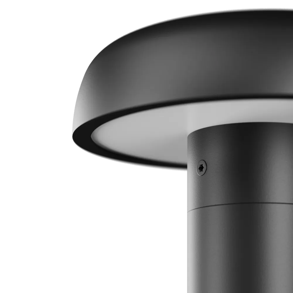 Боллард грибовидной формы изготовлен из металла, рассеиватель выполнен из поликарбоната с высокой светопропускной способностью. Диаметр головы 240 мм, устанавливается на опору круглого сечения по центру. Имеет две высоты 800 мм и 1000 мм. Создан для освещения пешеходных и подъездных дорог, уличных пространств: набережных, парков, детских площадок, парковок, придомовых территорий. Закладные в комплект не входят.