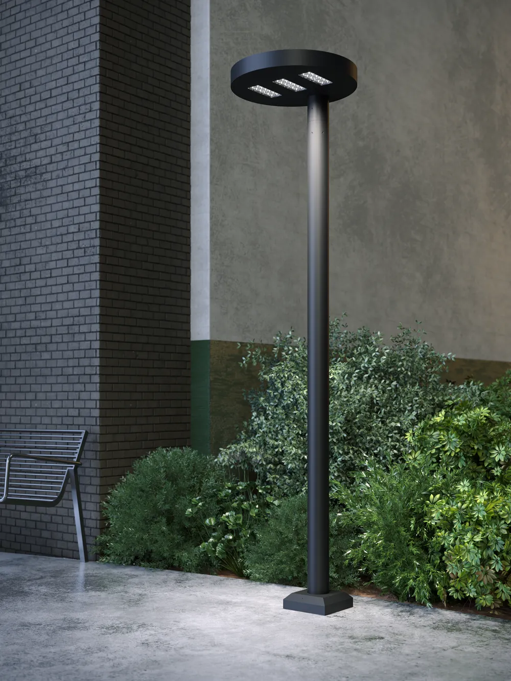 Sirius Е модификация, где опора смещена от центра светильника. Корпус в форме диска смотрится аккуратно и вписывается в любой ландшафтный проект, добавляя элегантности и современности общественным пространствам. В светильник устанавливаются линзы из прочного РММА (Ш135х70°, Ш150°). Подходит для освещения дорог, тротуаров. Поможет сделать нужные акценты. Опоры и закладные в комплект не входят.