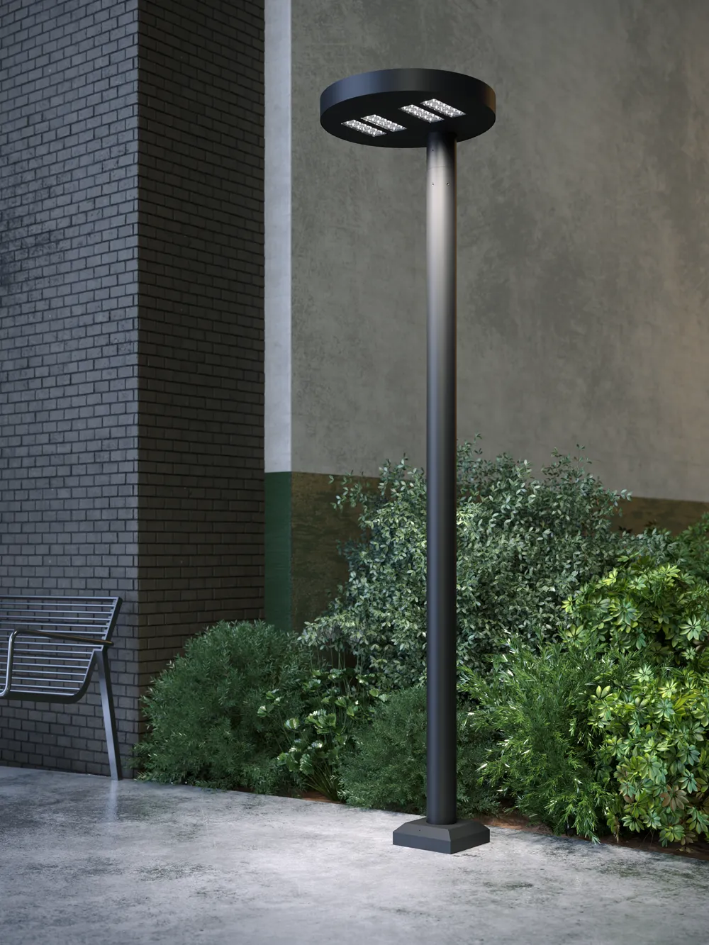 Sirius Е модификация, где опора смещена от центра светильника. Корпус в форме диска смотрится аккуратно и вписывается в любой ландшафтный проект, добавляя элегантности и современности общественным пространствам. В светильник устанавливаются линзы из прочного РММА (Ш135х70°, Ш150°). Подходит для освещения дорог, тротуаров. Поможет сделать нужные акценты. Опоры и закладные в комплект не входят.