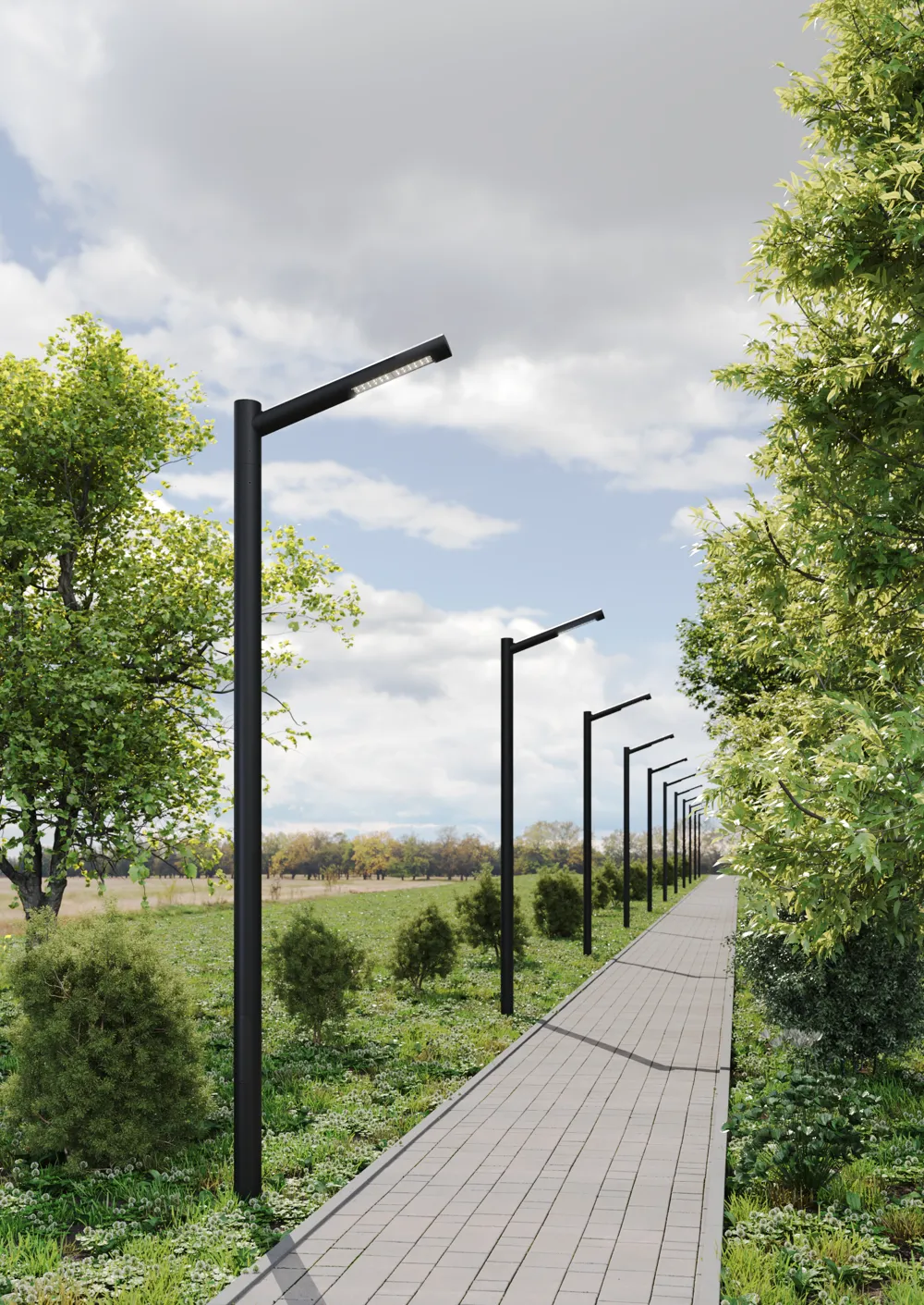 Светильник Torus выполнен в минималистичном стиле из круглой трубы диаметром 89 мм. Длина «головы» 600, 800 или 1000 мм на выбор, может быть расположена под углом 90, 100, 110, 120° относительно опоры, что позволяет охватить больше площади освещения. Оптическая часть имеет 1, 2 или 3 линзы Ш145х70° на выбор, мощностью 30Вт каждая. Парковые светильники серии Torus применяются для освещения придомовых и парковых территорий, прогулочных зон, улиц, площадей. Опоры и закладные в комплект не входят.