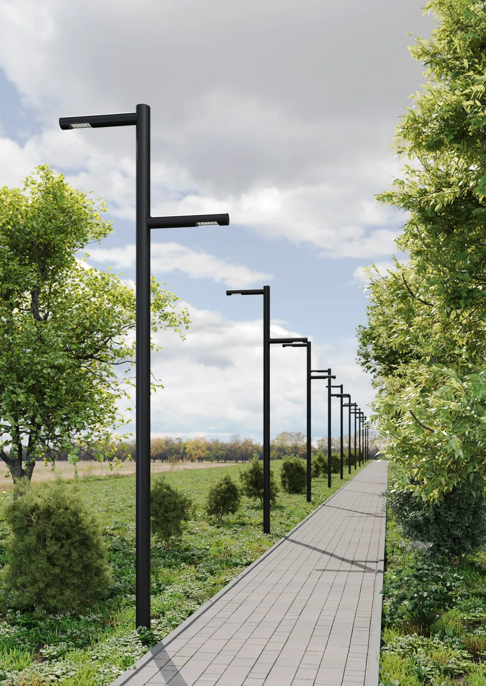 Светильник Torus выполнен в минималистичном стиле из круглой трубы диаметром 89 мм. Длина «головы» 600, 800 или 1000 мм на выбор, может быть расположена под углом 90, 100, 110, 120° относительно опоры, что позволяет охватить больше площади освещения. Оптическая часть имеет 1, 2 или 3 линзы Ш145х70° на выбор, мощностью 30Вт каждая. Модульные светильники Torus, можно расположить на разных уровнях в пределах одной опоры. Парковые светильники серии Torus применяются для освещения придомовых и парковых территорий, прогулочных зон, улиц, площадей. Опоры и закладные в комплект не входят.