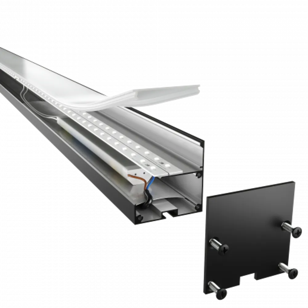 Выполнен из алюминиевого анодированного профиля с сечением 50*50мм. Эффективный теплоотвод, высокий индекс цветопередачи, равномерное свечение, максимально возможная длина – 3 метра. Предусмотрены различные варианты монтажа. Стандартная цветовая температура – 4000К. Возможно исполнение с цветовой температурой 3000К и 5000К. Цвет корпуса на выбор – черный, белый, без покрытия.